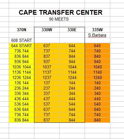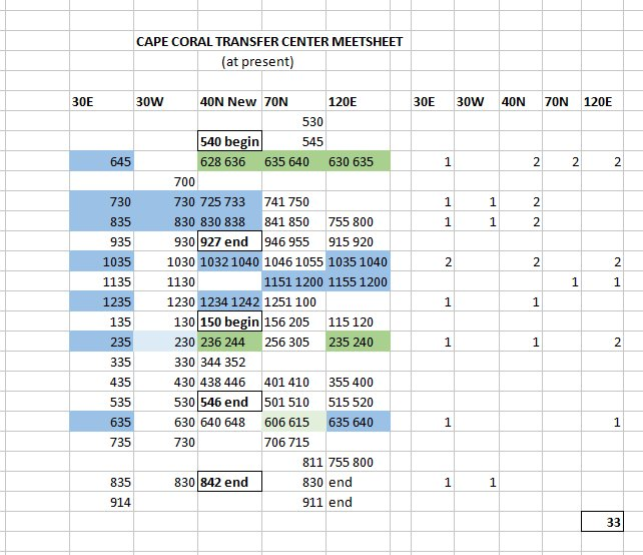 LeeTran's Cape Coral Transfer Center Meet Sheet